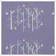 En roligt med viskartad design med en skog av björk träd mot lila bakgrund.