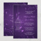 De här bröllopsinbjudningarna för metallväxterna har en fantasifull fågelburk med magiska, sagortalsnurrar och ett lila hjärta, och två söta fåglar som hänger bredvid bröllopsinbjudans formulering i champagne och lätt lila, allt mot en mörk äggplanta lila. Uppmaningsformuleringen, i alternerande skript och klassiskt serif typsnitt, är fullständigt anpassade.