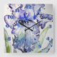 Lila Blå Iris Akvarell Målning Blommig Konst Fyrkantig Klocka