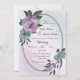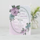 Unik bröllopsinbjudan med romantisk dammig lila och blåa blommor och grönt löv på ett vackert ovalt geometriskt ram. OM DU VILL HA MER MATCHING PRODUCTS klickar du på samlingen ovan eller kontaktar mig.