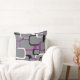 En roligt som är utformad för återininspirerade fyrkanter som utförs i lila, svartvitt mot en grått bakgrund på dekorativ kudde.