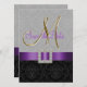 Den sofistikerade elegansen förmedlas av denna vackra bröllop spara datum Card-design. Ett grått- och svart på svart dämpningsmönster fungerar som bakgrund för en fotoeffekt av Metallic Guld Initial M och ett band med lila satin och diamantbrok ALL UTTRYCKT på FLAT-KORT Spara datummeddelanden från Bröllop. Ett perfekt sätt att tillkännage ditt kommande bröllop. Contemporary, men klassiskt dammmönster med en design som gör att du kan anpassa framsidan med namn och baksidan kan lägga till din anpassade datumtext. Bröllopsinbjudan är inställd för det första monogrammet "M". För annat brev, annat menyfliksområde färg och annan bakgrund kontaktar du designern på luxuryweddinginvitations@gmail.com. Layoututkast av Elke Clarke©. Grafik licensierad. Välj bland en mängd typsnitt och vackert för att göra din bröllopsinbjudning till PERFEKT!