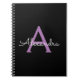 Lila Black Script Girly Monogram Namn Anteckningsbok