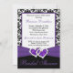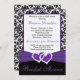 Den här moderna chicens svarta och vita damm inbjudningskort för möhippan har ett lila tryckt band med ett par FAUX (PRINTED) glitter gått med diamanthjärtan på den. All text och typen av papprare är anpassade. ***Observera att det inte finns någon förhöjd inslag om denna konstruktion. Allt är platt. Det visas här på en grundläggande papper, men det skulle se särskilt bra ut på den lustrous metalliska "isen"-pappra, som har en subtil metallisk gnistra. Jag skulle INTE använda någon av de färgad (metallchampagne, guld, silver, späckad) eftersom ALLA kommer att missfärga inbjudan. Linjen papprare lägger till ett struktur tunt linjer som du kanske inte vill ha. Grundläggande eller återvunnet är ett billigare alternativ om man har en snävare budget.***Observera att om du ändrar teckensnittets typsnitt eller storlek kan det ändra hur inbjudan skrivs ut. Det kommer att skrivas ut som du ser det på bildskärmen, så om du har justeringsproblem eller storleksproblem kontaktar du mig om du behöver hjälp. Jag kommer inte att se din inbjudan som du beställer och Zazzle kommer INTE att redigera något (typos, justering osv.). Om du behöver hjälp eller vill ha andra matchande objekt kan du skicka en e-post till niteowlstudio@gmail.com.