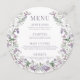 Lila blomkrans runt bröllop Menu Card Platt Meny