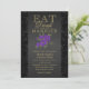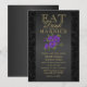 Lila och svart blomma - Ät, drick och bli gift Bröllopsinbjudan. ⭐Denna produkt är 100% anpassningsbar. Grafik och/eller text kan läggas till, raderas, flyttas, ändras i storlek, roteras osv... 99% av mina mönster i min butik är gjorda i lager. Detta gör det enkelt för dig att ändra storlek och flytta grafik och text så att det passar varje produkt perfekt. ⭐ (Var noga med att ändra storlek eller flytta grafik om det behövs innan du beställer) Du kan också "ÖVERFÖRA DESIGN" till andra Zazzle-produkter och anpassa designen så att den passar de flesta Zazzle-produkter. (knappen finns nere på höger sida av sidan) En del av textgrafiken har rutor som du kan fylla i eller så kan du klicka på "ANPASS
