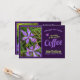 Följ med oss på en lugn morgon i trädgården med kaffe och samtal. Perfekt för inflyttningsfest, intima sammankomster, firanden eller bara för att återkoppla. Redigera texten och detaljerna så att de passar din speciella tillställning. Designad i jordiga men livfulla färger, med foton på lila Iris-blommor och lila och gröna färgteman för att komplettera denna glada inbjudan. Och, jag har lagt till en söt liten lila fjäril på framsidan och baksidan, som verkligen fullbordar den där trädgårdskänslan. Din morgonkaffegemenskap i trädgården börjar med en vacker inbjudan. Anpassa den nu och sätt tonen för en oförglömlig tillställning. Det är verkl