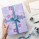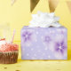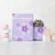 Blommar för halvgenomskinlig blommigt på vit polka punkt mönster och lavender lila bakgrund.