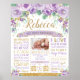 Lila Blommig 1-års Födelsedagsmilstolpe Födelseinf Poster
