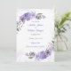 Platt Bröllop Spara Datum-kort med en lila blommig design.