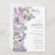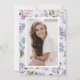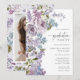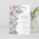 Lila blomsterlig examensinbjudan. Fira din examen från gymnasiet eller universitetet med denna eleganta, moderna och rustika inbjudan med ömtåliga, handmålade akvarellsyren i mjuka lila nyanser, lavendelfärgade rosor och blåa vilda blommor med frodig grönska. Perfekt för vår- och sommarfiranden, lägg till ditt favoritfoto från examen på baksidan och anpassa formuleringen, typsnittsstilarna, färgerna och storlekarna för att skapa en inbjudan som speglar din resa med tidlös charm.