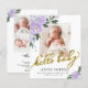 Vacker lila blommande akvarell, fotofödelsemeddelande och tackkort. Lätt att anpassa med dina bebisfoton och detaljer. Vänligen kontakta mig via chatt om du har frågor om konstverket eller behöver anpassning. OBS: För hjälp med beställningar, leverans, produktinformation etc., kontakta Zazzle kundtjänst direkt https://help.zazzle.com/hc/en-us/articles/221463567-How-Do-I-Contact-Zazzle-Customer-Support-