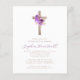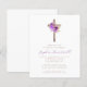 Lila Blommig Kors Dop Inbjudan Med Budget