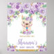Lila Blommig Lama Bebisdopp Flickas Välkomstskylt Poster