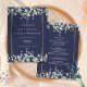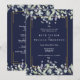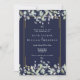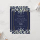 En stilfull allt-i-ett bröllopsinbjudan med vackra salvia- och lila blad som faller över en elegant guldram som innesluter dina bröllopsdetaljer i klassisk elegant text på en marinblå bakgrund. Anpassa med all din speciella bröllopsdagsinformation på baksidan, inklusive din RSVP, boende och ytterligare detaljer. Designad av Thisisnotme