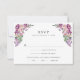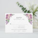 Lila Blommig RSVP-kort. Med elegant kalligrafiskrift och utsökt handmålad akvarellkonst i mjuk lavendel, rosafärgad, djup burgunderröd och livfull lila, prydd med ömtåliga vilda blommor, rosor och elegant grönska. Perfekt för vår-, sommar- och hösthundbröllop, viskar varje föremål i denna samling om kärlek, förtrollning och tidlös romantik som sätter scenen för din oförglömliga fest. Låt naturens skönhet och den vintage elegance charmen pryda din speciella dag med vår fängslande samling.