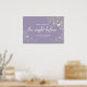 Elegant, vintage, blommig, boho lila lavendel välkomstskylt för kvällen före övningsmiddagen med guld- och silverblommig spets och modern kalligrafi.