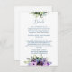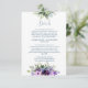 Lila och Grön Blommig Design Infogad Kort med marinblå text på en krispig vit bakgrund. Detta snygga kort kombinerar tidlös elegans med modern bekvämlighet, eftersom det innehåller en diskret QR-kod för enkel åtkomst till ytterligare bröllopsinformation. Den livliga blommiga motiven ger en touch av sofistikering till era inbjudningar, vilket gör detta infogade kort till den perfekta kombinationen av tradition och innovation för er speciella dag.