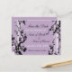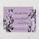 Bröllop spara datum ankomstkort i elegant lila och svart blommig mönster, stilfullt och helt anpassningsbart med dina bröllopsdetaljer. Finns även i många andra produkter för bröllopsfesten.