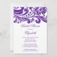 Börja din händelse på rätt sätt med vår trendiga och eleganta lila och vita blommiga virvel Bröllopsfest inbjudan på en krispig vit bakgrund. Anpassa bara vår inbjudan med din bröllopsinformation och du är redo att gå. Finns i andra färgkombinationer i vår butik på www.celebrateitweddings.com. Kolla in våra matchande tackkort, klistermärken och bröllopsknappar i vår butik