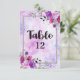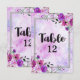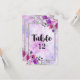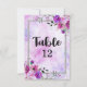Lila blommiga och silverramade bröllopsbordnummer inbjudningar