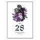 Whimsical vintage blommiga ugglor gotiska bröllopsbord nummerkort i accenter av lila anpassningsbara till din evenemangspecifikationer.
