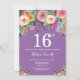Lila Blommigt 16:e födelsedagsinbjudan Inbjudningar