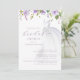 Lila Blommigt Bröllop Dress Inbjudningskort för möhippan Den här inbjudan innehåller en enkel bröllop, vattenfärgblommor och anpassningsbar mjuk lavender-kalligrafi.