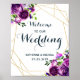 Lila Blommigt Bröllop Välkomstskylt. Du hittar matchande produkter (t.ex. Inbjudan, OSA kort, Mottagningskort, tackkort, Party-banderoll, Sticker med mera) via den här länken https://www.zazzle.ca/tinkercloset/gifts?cg=196337265831164894