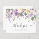 Lila blommigts budgetsympati tack för att du fick ett kort med en överkant gräns av vattenfärgade målade blommor i skuggor av pastellviolett, lavender, lilac och elfenben. Nedan står "tack" i manuset tillsammans med den avlidnes familj namn. Använda mallen som du vill lägga till ditt personlig-meddelande. En elegant att tacka gäster för kärlek:s begravning.