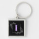 Lila Blommigt Butterfly Anpassningsbar Monogram - Fyrkantig Silverfärgad Nyckelring