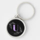 Lila Blommigt Butterfly Anpassningsbar Monogram - Rund Silverfärgad Nyckelring