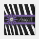 Lila blomma med diamantgrafik i mitten, svart och lila namnskylt som gör att du kan anpassa ditt namn och svartvit bakgrund för zebra tryck mönster. En söt feminin gigantisk gåva till en flicka eller kvinna på födelsedagen eller studenten.