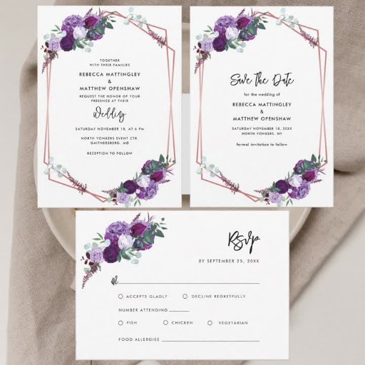Purple Floral Rose Gold Geometric Wedding SuiteDesignad av S A Holmes