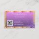 Lila och rosa övertoning faux glitter bakgrund.Med en klassisk guld ram och vattenfärgade blommor av lila färgad. Anpassa och lägg till ditt monogram, namn initialer. Ett affärskort för en kosmetolog, hår och skönhet, skönare, florist, konsult. Tillbaka: Lägg till din kontaktinformation och din egen QR-kod på webbplatsen.