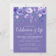Vintage blommigt begravning firande av livets inbjudan, med en mängd lila, lilac och blåa blommor. Kortet levereras med en mall som du kan använda för att behålla och anpassa eller anpassa ytterligare och göra egna snyggtar.