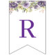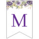 Från vår Violet-samling har den här vackra banderollen en vattenfärg av lila, lavender och blommor med gröna accenter. Du kommer att ha 16 flaggor för att anpassa ditt meddelande. Tryckt på en robust kardstock och innehåller en sträng för hängning.
