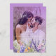 Lila Blommigt Script | Photo Bröllop spara datum Inbjudningar