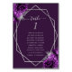 Den här eleganten har det moderna bröllop-bordsnumret ett silver-geometriskt ram som dekoreras med plum- och silver-blommigt-buketter på en lila bakgrund. I anpassadet kombineras silver grått med fysisk handskrift, tryckplåt och kursivt typsnitt. Baksidan är solid lila.