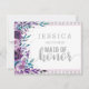 Lila Blommigt & Faux Silver Glitter Rand & Confetti Watercolor Blommigt Bröllop Kommer du att vara min maid of honor. Med trendigets penselskriptteckensnitt! ~ Kolla min butik för att se hela bröllop-svit för den här designen!