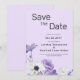Meddela din speciella dag med elegans och charm med den här Lila Blommigten Spara datuminbjudan! Den här inbjudan är en perfekt för ett romantiskt, trädgårdsinspirerat bröllop och innehåller delikata blommigtar i lavender, violett och lilac, tillsammans med sofistikerat skript typsnitt. Perfekt för elegant, rustik, trädgård eller boho bröllop, denna vackra inbjudan att rädda datumet lämnar ett bestående intryck på dina gäster.