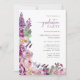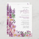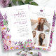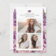 Inbjudan till Studentfest av lila Blommigt. Ange tonen för ett minnesvärt firande med den här fantastiska studentfesten för högskoleanställda och student. Den här designen har kalligrafi-skript för elegant och handmålade blommigtar för vattenfärg och visar en lush-sidbukett i mjuk lavender, rosa, djup burgundi och pulserande lila, accentuerad med ömtåliga vilda blommor, ro och spola grönt för ett färskt och snyggt utseende. Idealisk för vår och sommartid studenten, fångar den här inbjudan säsongens skönhet samtidigt som du firar din milstolpe. I baksidan finns en koordinerande mönster tillsammans med en trefoto-kollage, som ge dig perfektens utrymme för att visa dina favoritminnen. Oavsett om du är värd för en avslappnad utomhus eller en elegant soirée, är den här inbjudan ett perfekt till inbjudan familj och vänner att gå med i firande.