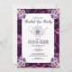 Inbjudan till möhippa Tea Party in vintage blommigts and tekanna design with rik lila, burgundy, rosa swirls.