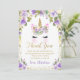 Lila Blommigt Unicorn Birday Tack you Card Kort