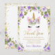 Lila Blommigt Unicorn Birday Tack you Card