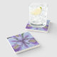 Stone underlägg fotobilden av en lätt lila, utan att Iris blommar med stänk av gult tillsammans med regndroppar på dess petaler. En underbar, blommigt design! Markera din sten underlägg stil.