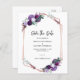 Vår geometriska samling för lila blommigt är perfekt för att skapa ett meddelande till bröllop. Med en modern svart kalligrafi, med ro guld geometriska ram på vit bakgrund, är detta perfekt för Spara datum meddelande. TIP: OSA kort, bröllopsinbjudan, Möhippa och mycket mer finns att tillgå i den här bröllop-sviten som är kantad för din bekvämlighet