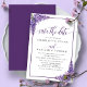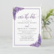 Ange tonen för bröllop med den här Lila Blommigten Wisteria Corners Spara datumkortet, med delikata vattenfärgsblommor som ramar in kant i en elegant. Det romantiska kalligrafiskriptet parat med ett modernt serif-teckensnitt skapar ett tidlöst estetiskt, perfekt för trädgård, vår eller blommigt bröllop. Mjuka lilor ger en drömmande knuff och skapar detta som det perfekta valet för par att planera en elegant och ett sofistikerat firande. Anpassa dina uppgifter om bröllop för ett unikt och minnesvärt meddelande.
