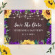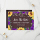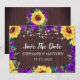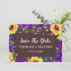 De här sparar datumkorten med rustiska solrosor och lila ro med träbakgrund och ljus. Anpassa dem med din egen text. Matchningsprodukter finns också tillgängliga.