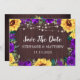 De här sparar datumkorten med rustiska solrosor och lila ro med träbakgrund och ljus. Anpassa dem med din egen text. Matchningsprodukter finns också tillgängliga.